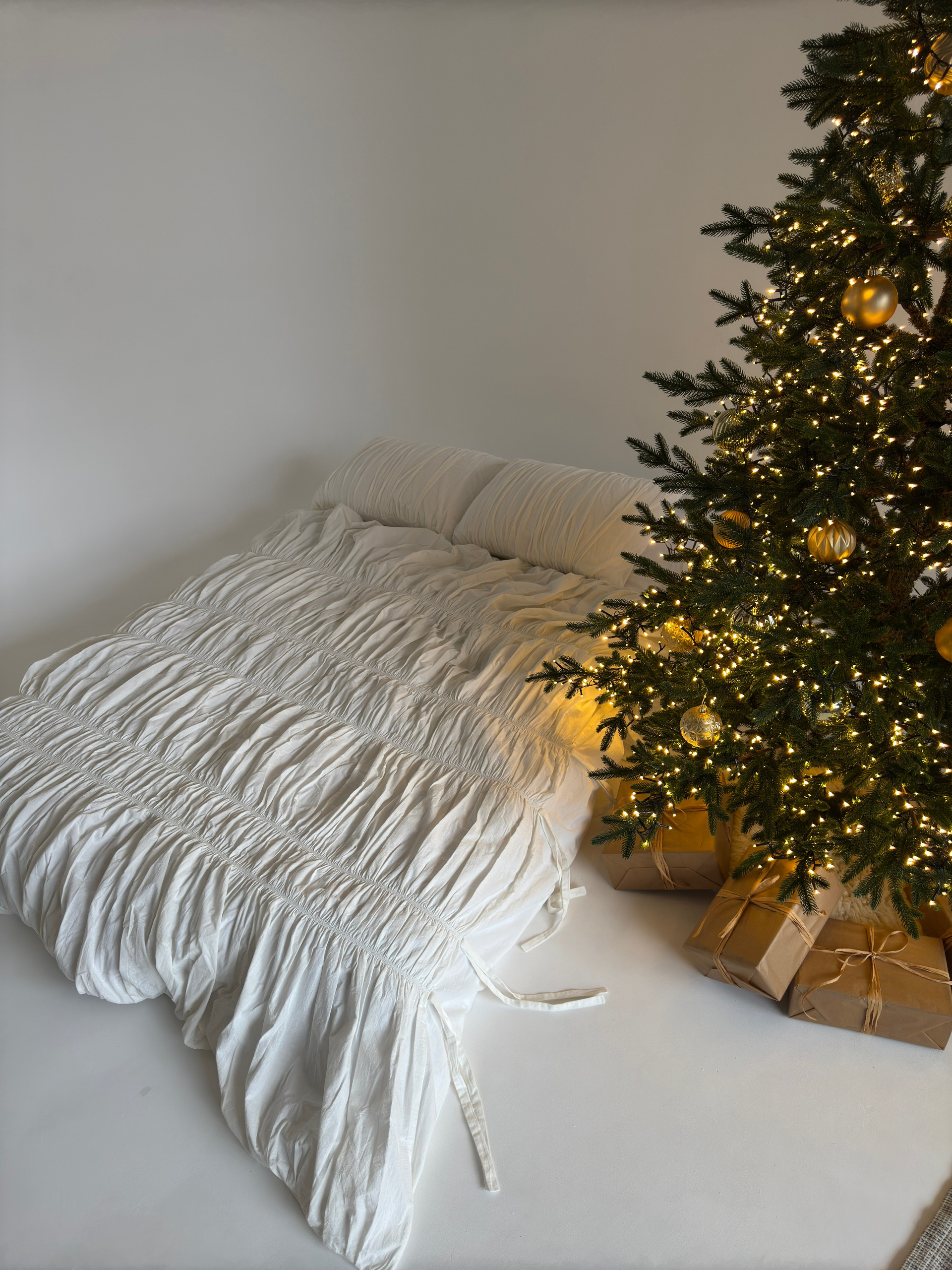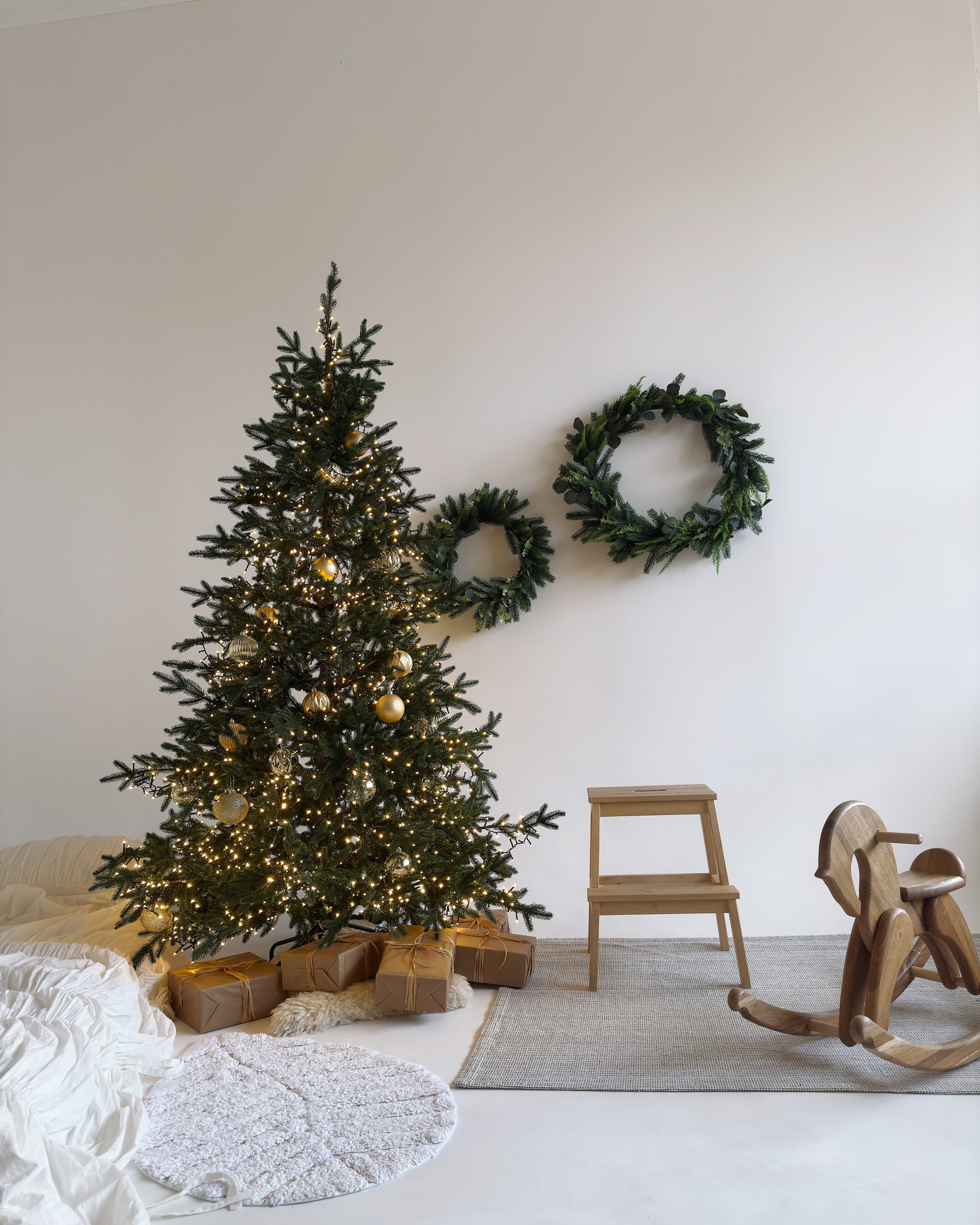 Останется таким же минималистичным и в то же время нарядным, как и в прошлом году. Будет совсем небольшая светлая локация с елкой, которую можно перемещать, ковром и подарками. Идеально для новогодней фотосессии в стиле минимализм.
